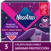 | Descripción | Calzón Nocturno NosotrasLas Toallas Nosotras Buenas Noches Máxima Protección te brindan seguridad y confort para que descanses mejor durante las noches con flujo abundante. Su tecnología de protección 360° se ajusta a tu cuerpo, evitando cualquier accidente. Son tan prácticas como tu ropa interior habitual. Aprovecha los calzones desechables que Nosotras ha preparado para ti. ¡Sus beneficios son increíbles!